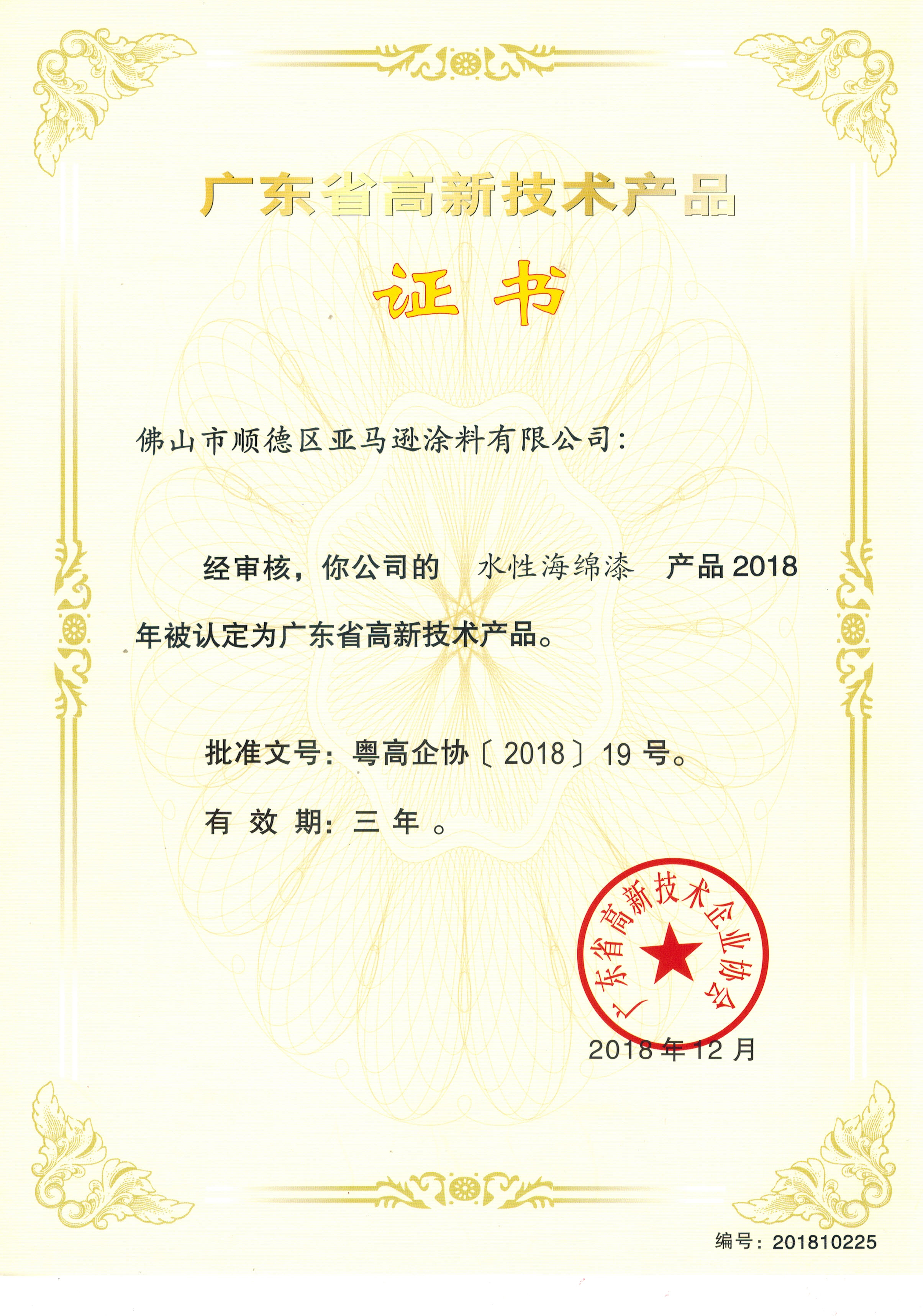 恭喜我司的“水性双组份聚氨酯漆”、“水性双组份环氧底漆”、“水性海绵漆”三个产品2018年被认定为广东省高新技术产品。